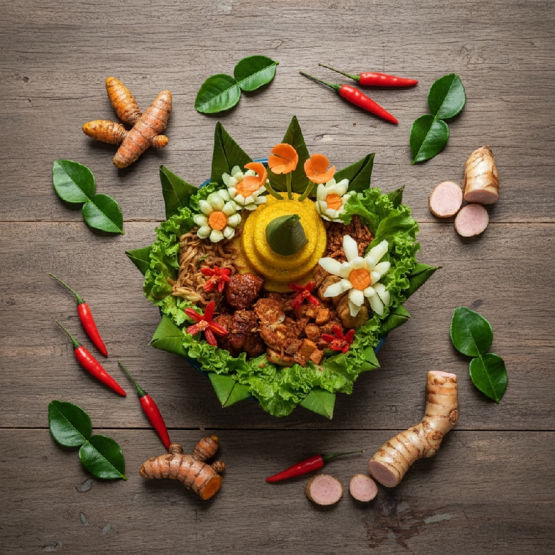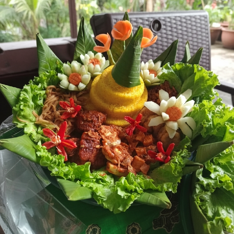 ✅ Praktis & Lengkap: Sudah termasuk nasi kuning dan lauk-pauk komplit, siap disajikan.